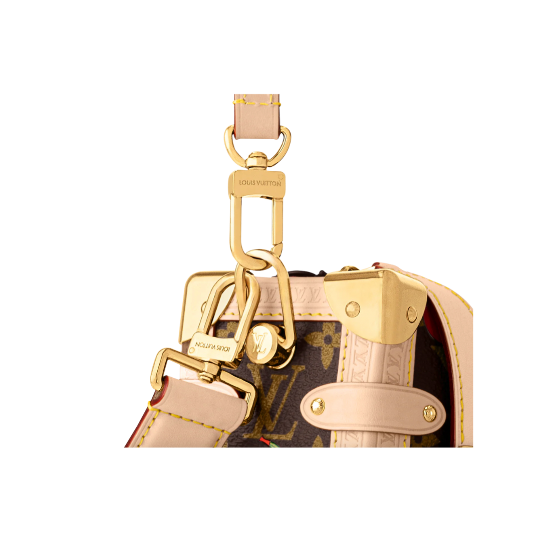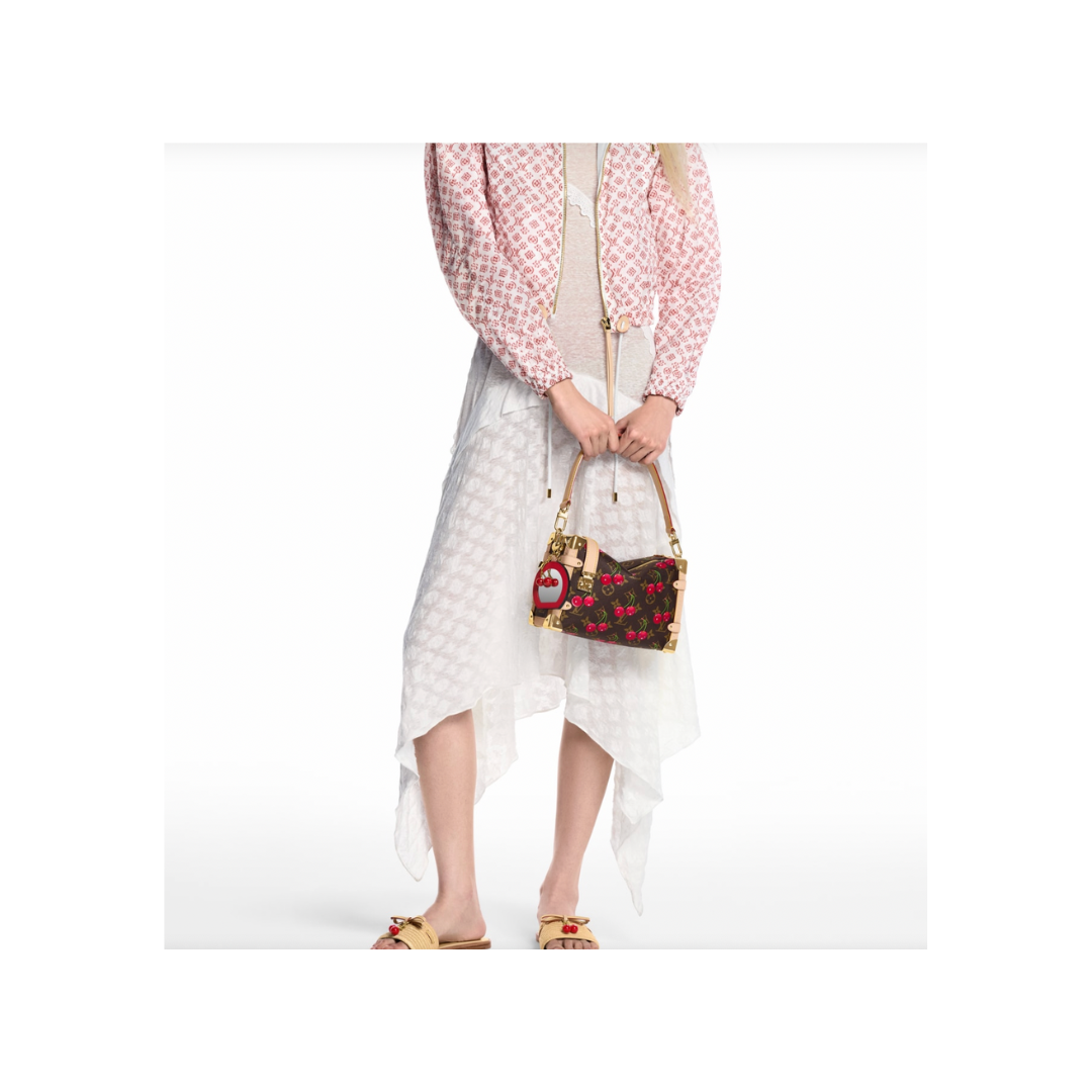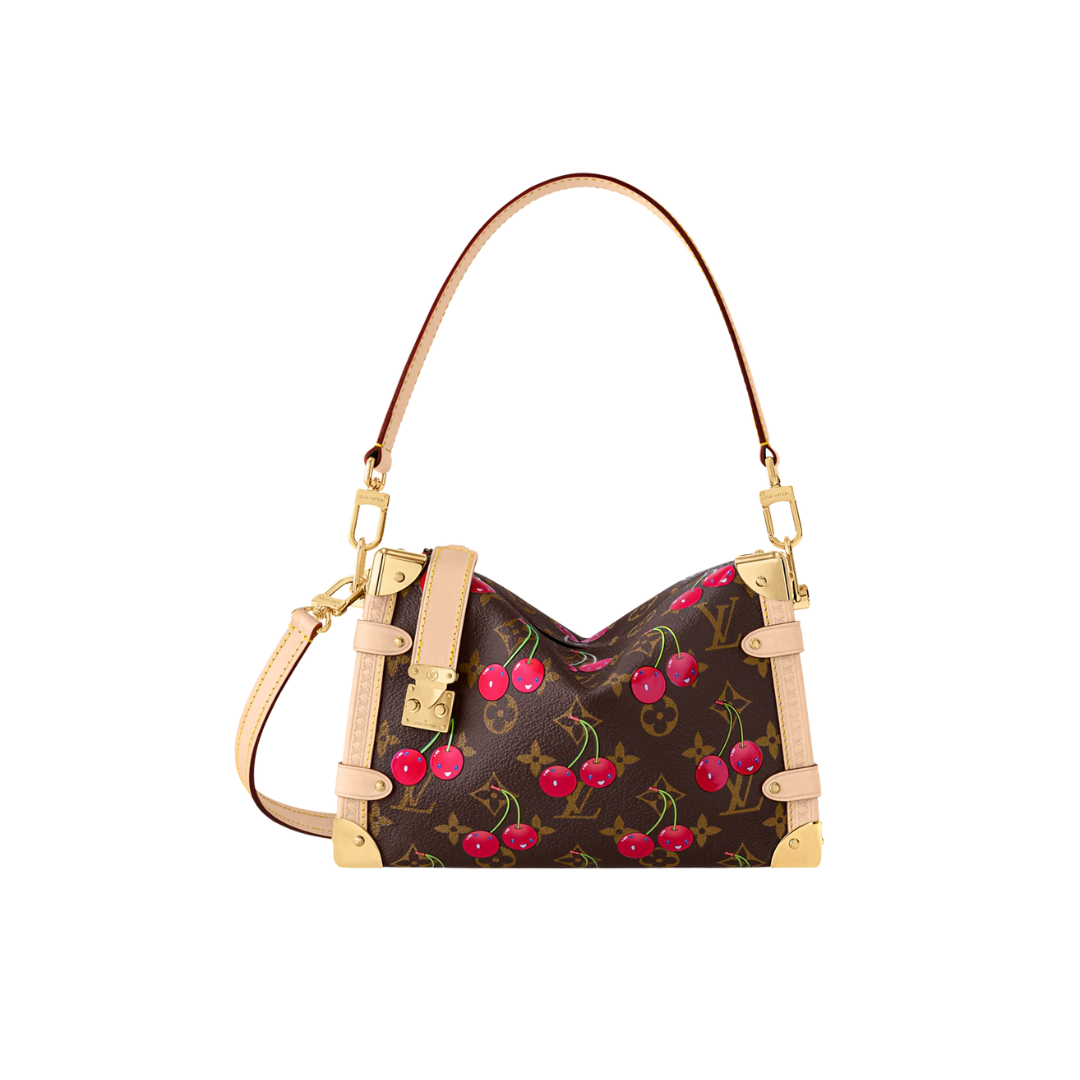 Reflecting the playful spirit of the celebratory re-edition of the Louis Vuitton x Murakami collection, the Side Trunk MM is crafted from classic Monogram coated canvas adorned with luscious cherry motifs in the Japanese artist’s exuberant aesthetic. Natural cowhide leather trims and golden hardware pay homage to the House’s travel heritage, including riveted corners and an S-lock closure.