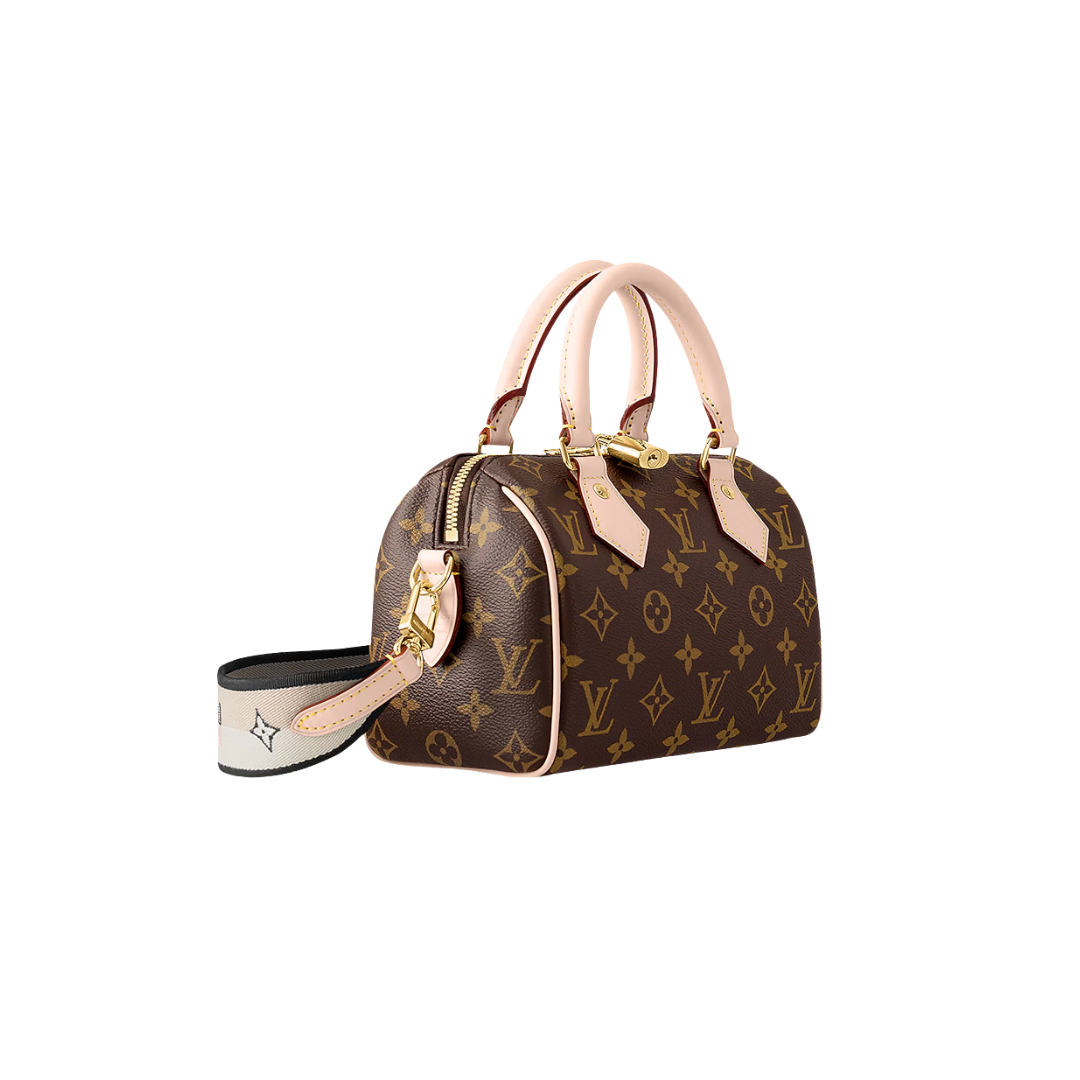 Like a diminutive version of the House’s historic Speedy travel bag, the Speedy Bandoulière 20 handbag is crafted from Monogram canvas with natural cowhide trim. In addition to the rolled leather top handles, there’s a wide detachable and adjustable textile strap with a woven Louis Vuitton signature. This bag’s classic design is completed with red textile lining.